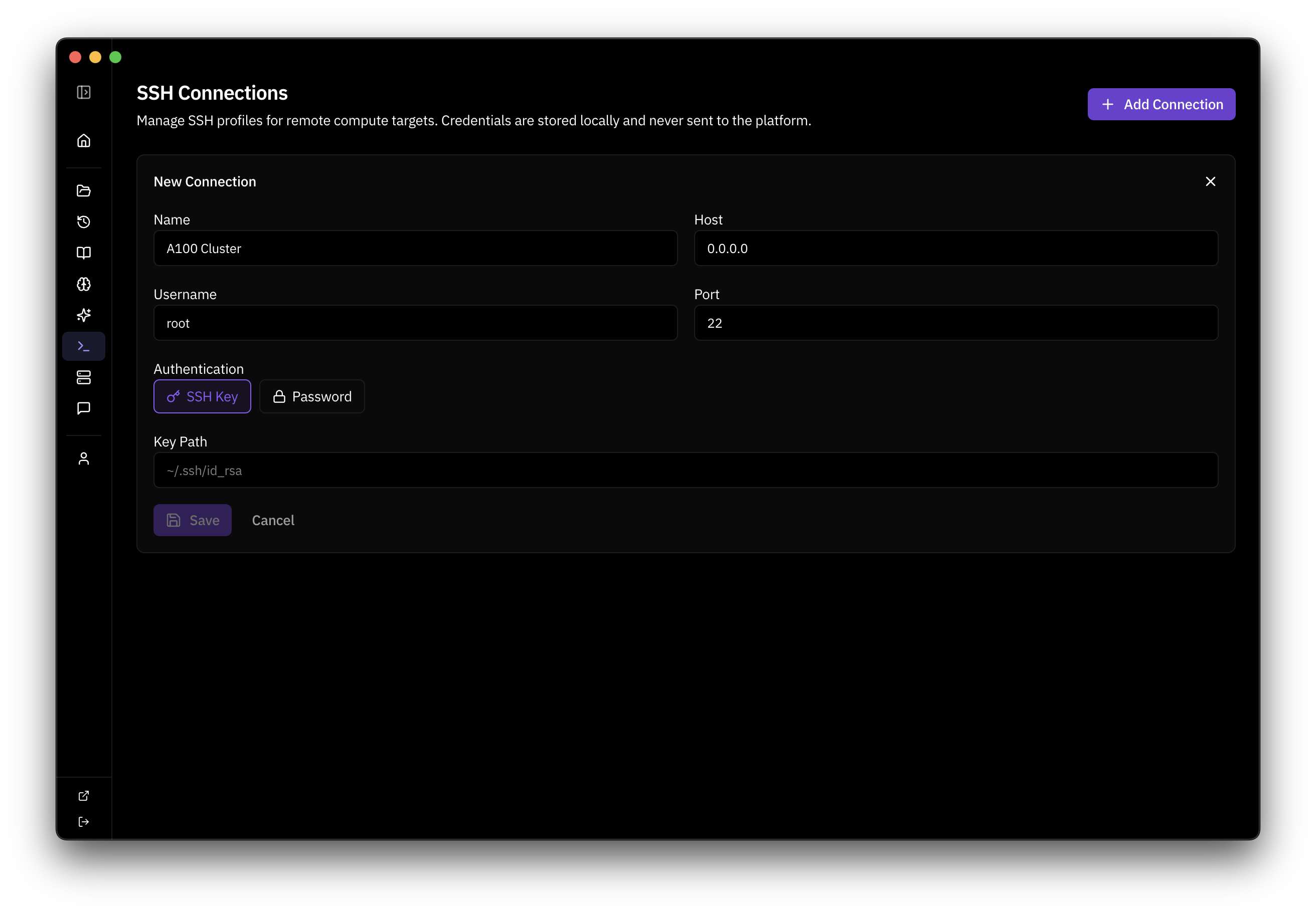 Supermatter agent swarms now execute directly on remote GPU clusters and HPC nodes over SSH. A dedicated specialist agent manages remote compute — training jobs, environment setup, GPU monitoring — while the rest of the swarm handles local work in parallel. Zero config on the cluster side, credentials never leave your machine.