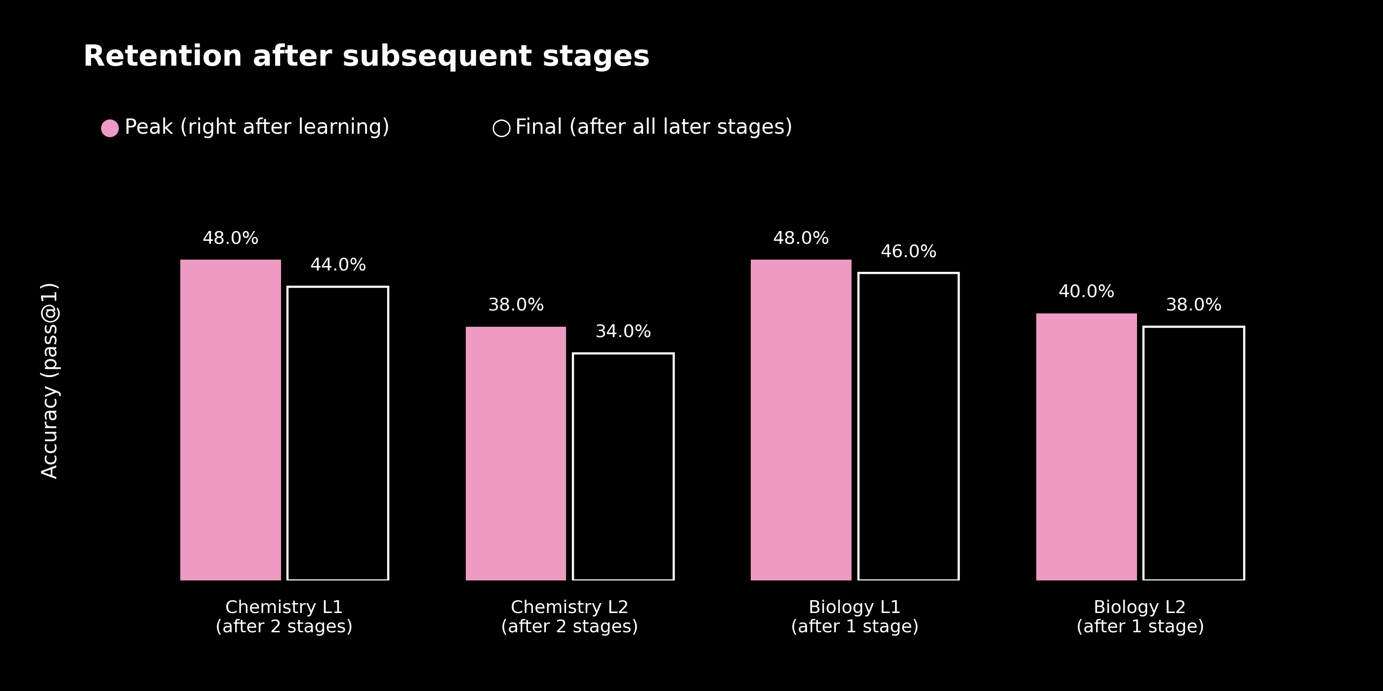 | Biology | L1 | 44.0% | 48.0% | +4.0pp |
